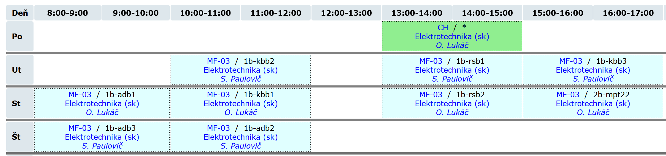 | 1 | 09.02 - 13.02 | Organizácia semestra, Vyhláška 508/2009, Prvá pomoc, BOZP, Účinky el. prúdu na ľudský organizmus | |